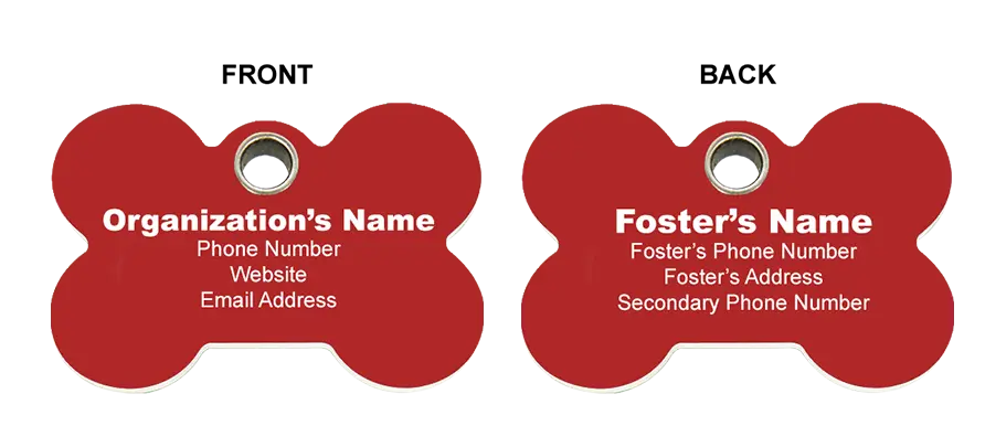 This is our special for FOSTER DOGS. It is important to have I.D. Tags that have the Organization’s Information AND the person’s information that is FOSTERING the dog.